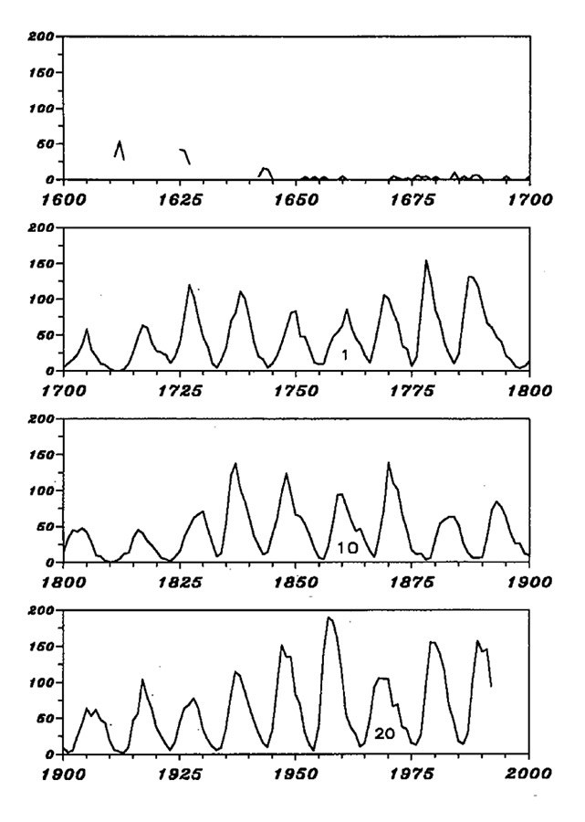 Солнце имеет одиннадцатилетний цикл активности и в 1990 году активность была близка к